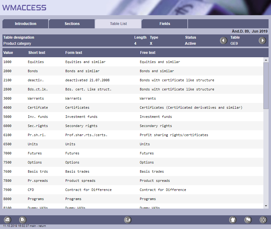 For each WM field, which is contained on the detail display of the securities master data, a comprehensive functional field description including the relevant table attributes can be obtained via the optional module wmGuide.