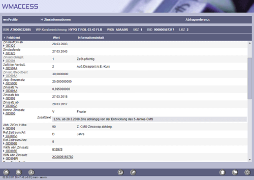 Das Profil Zinsinformation enthält relevante Informationen über fest und variabel verzinsliche Wertpapier sowie Zinsstammdaten.